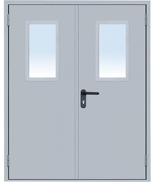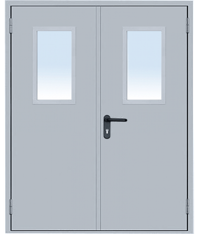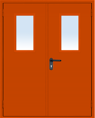 Противопожарная металлическая дверь ДПМO-2/60 EI-60 двупольная остекленная отвечает требуемым стандартам огнестойкости и получила соответствующие сертификаты, предусмотренные Госстройнадзором и правилами пожарной безопасности.