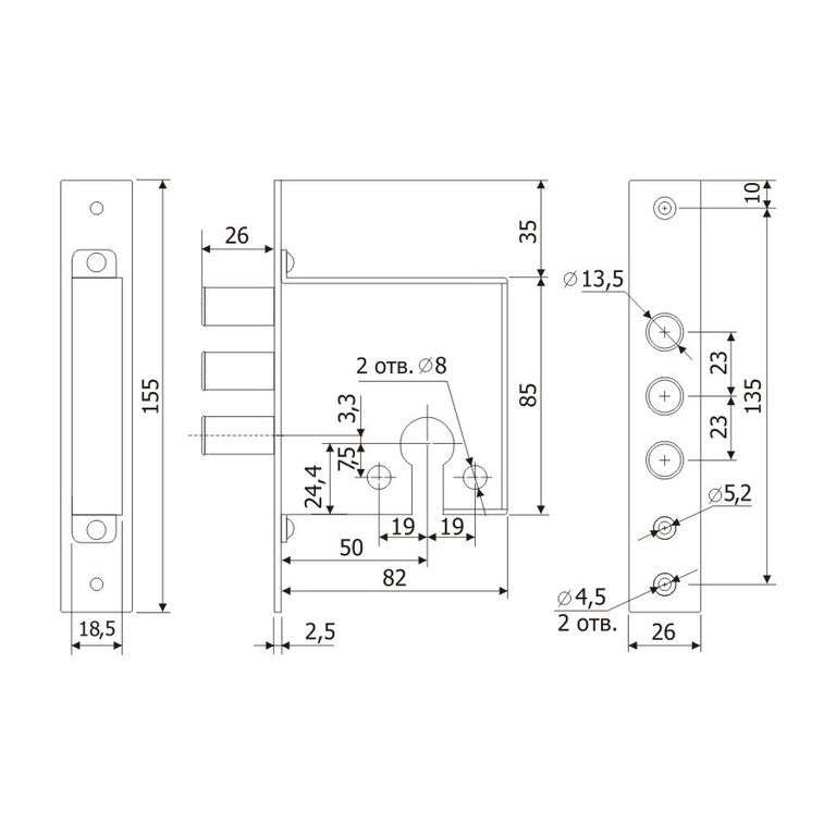 | Вылет ригелей | 26 мм |