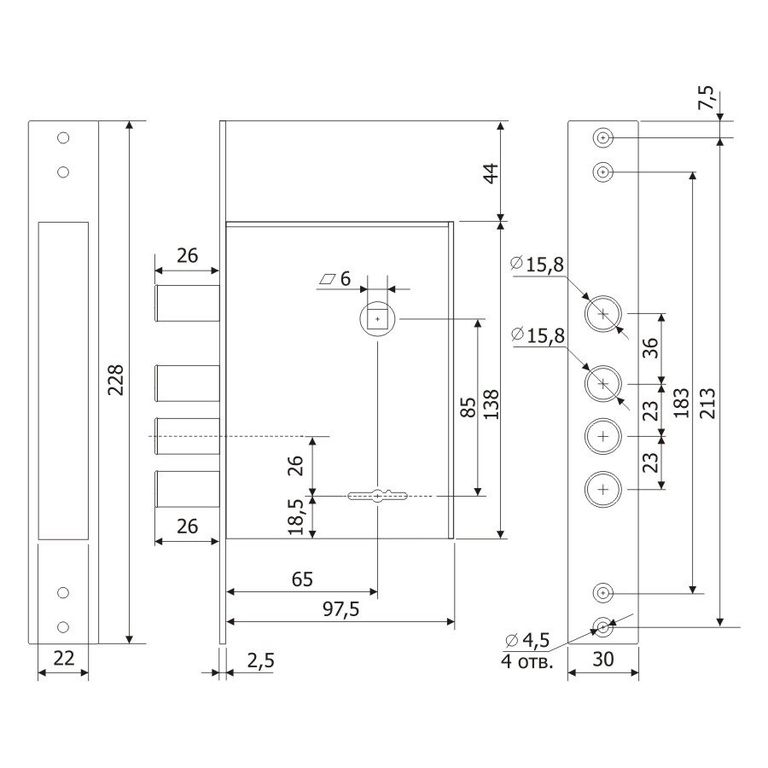 — Защита от взлома – при полностью выдвинутых ригелях замка, 30% их длины остается в корпусе замка, усилена конструкция засовов