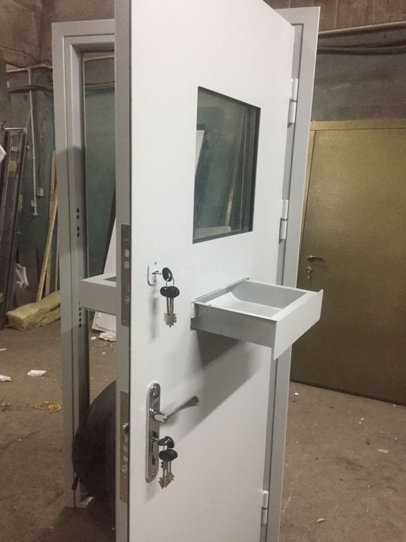 Каталог кассовых дверей с различными видами кассовых окон, лотков и модулей. Предлагаем купить металлические кассовые двери с окном и лотком с доставкой с нашего склада в Самаре.