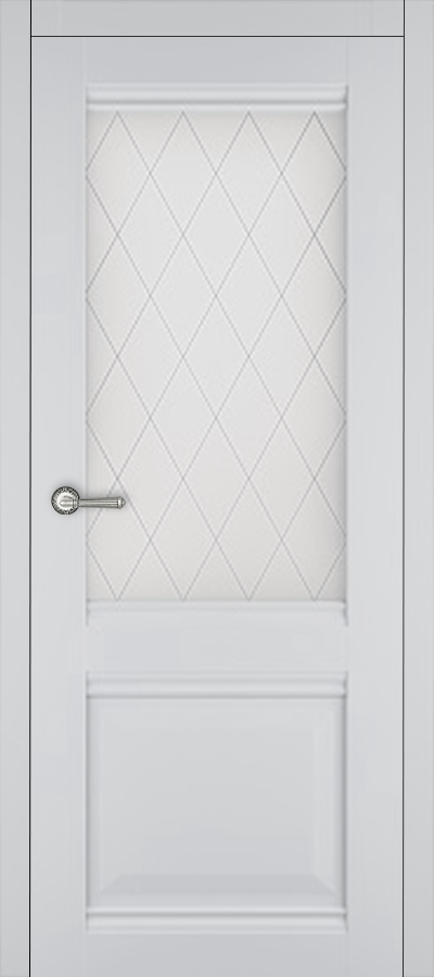 Царговые (сборные) двери изготавливаются в глухом и остекленном варианте в пленке с текстурой под натуральный шпон. В остекленной двери используется матовое стекло (сатинат) с витражным рисунком. Двери комплектуются телескопическим погонажом.
