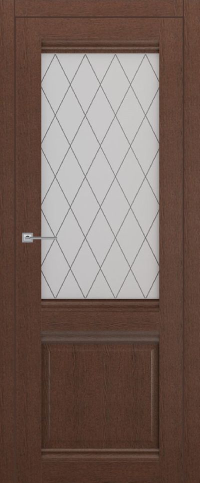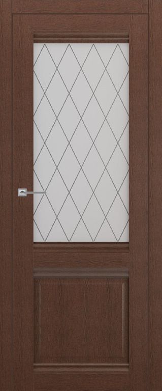Царговые (сборные) двери изготавливаются в глухом и остекленном варианте в пленке с текстурой под натуральный шпон. В остекленной двери используется матовое стекло (сатинат) с витражным рисунком. Двери комплектуются телескопическим погонажом.