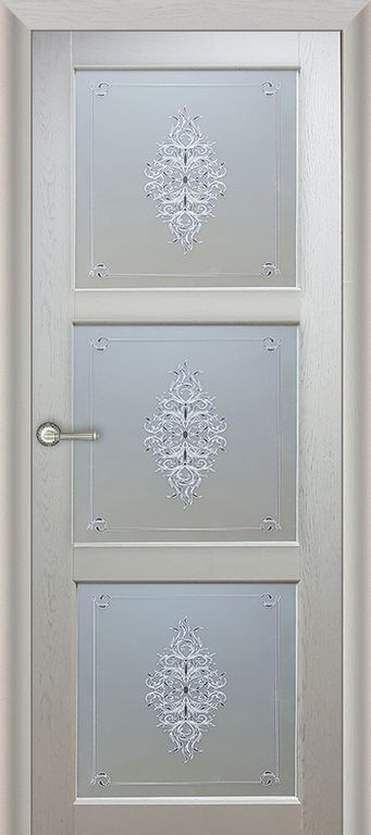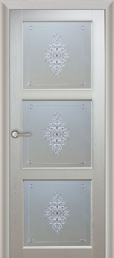 Царговые (сборные) двери изготавливаются в глухом и остекленном варианте в пленке с текстурой под натуральный шпон. В остекленной двери используется матовое стекло (сатинат) с витражным рисунком. Двери комплектуются телескопическим погонажом.