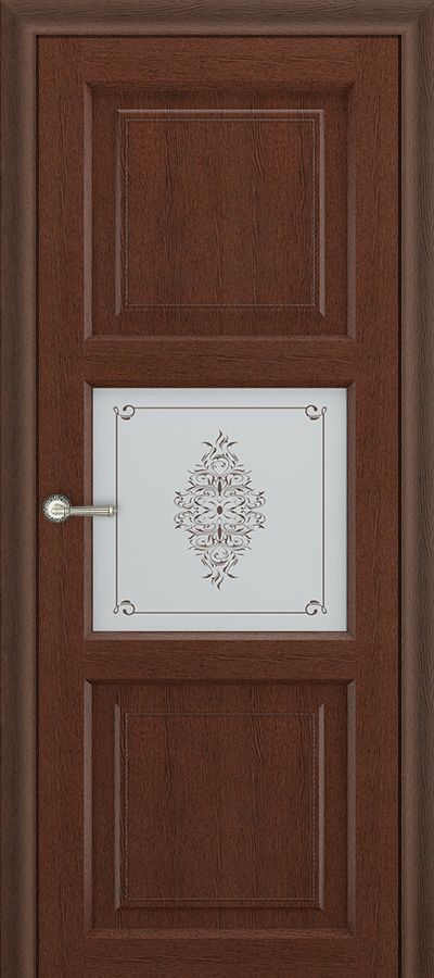 Царговые (сборные) двери изготавливаются в глухом и остекленном варианте в пленке с текстурой под натуральный шпон. В остекленной двери используется матовое стекло (сатинат) с витражным рисунком. Двери комплектуются телескопическим погонажом.