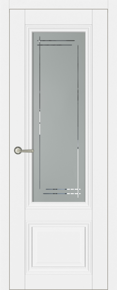 Царговые (сборные) двери изготавливаются в глухом и остекленном варианте в пленке с текстурой под натуральный шпон. В остекленной двери используется матовое стекло (сатинат) с витражным рисунком. Двери комплектуются телескопическим погонажом.