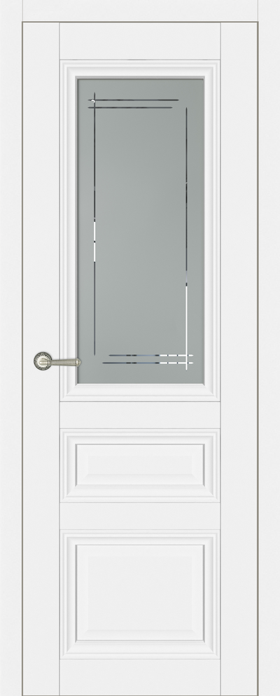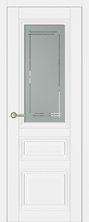 Царговые (сборные) двери изготавливаются в глухом и остекленном варианте в пленке с текстурой под натуральный шпон. В остекленной двери используется матовое стекло (сатинат) с витражным рисунком. Двери комплектуются телескопическим погонажом.