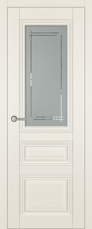 Царговые (сборные) двери изготавливаются в глухом и остекленном варианте в пленке с текстурой под натуральный шпон. В остекленной двери используется матовое стекло (сатинат) с витражным рисунком. Двери комплектуются телескопическим погонажом.